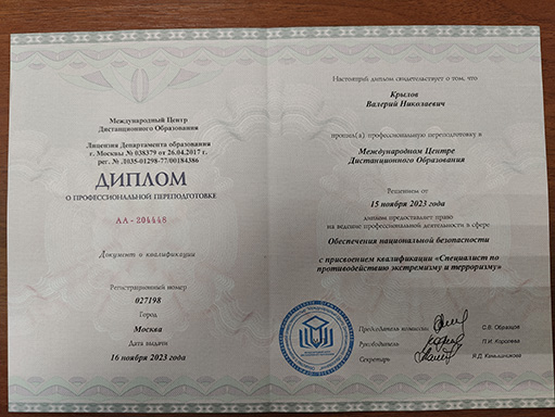 Ветеран спецподр-я МВД (майор) участник боевых действий.